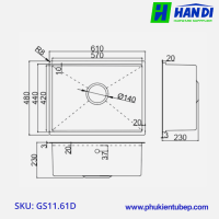 Để hiểu rõ hơn về sản phẩm, hãy cùng điểm qua các thông số kỹ thuật quan trọng của Chậu rửa 1 hố âm bàn đá GARIS GS11.61D: