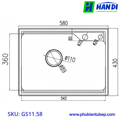 Phân loại: Chậu rửa 1 hố nhỏ GARIS GS11.58