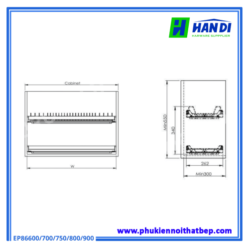 Chiều rộng tủ phủ bì phù hợp: 600/700/800/900 mm