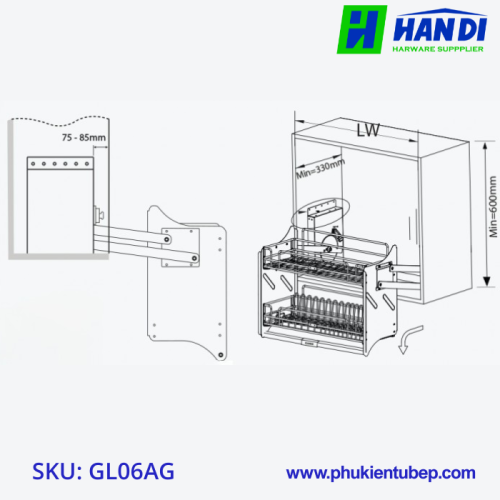 Để giúp bạn hiểu rõ hơn về sản phẩm, chúng tôi xin cung cấp thông số kỹ thuật chi tiết của Giá bát dĩa nâng hạ nhôm màu Champagne GARIS GL06.70AG, GL06.80AG, GL06.90AG: