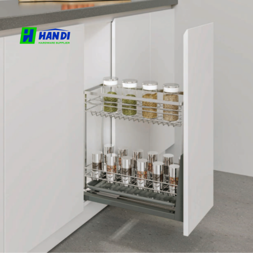 Tính năng nổi bật: Chuyên đựng chai lọ gia vị, chống gỉ sét tuyệt đối, ray giảm chấn êm ái, có khay hứng nước.