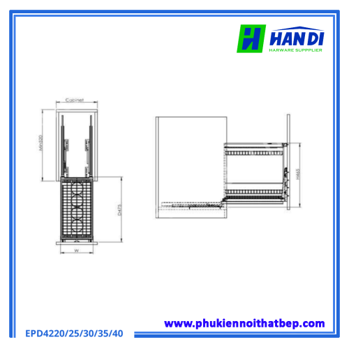 Kích thước sản phẩm: W160*D475*H465 ; W210*D475*H465 ; W310*D475*H465 ; W360*D475*H465