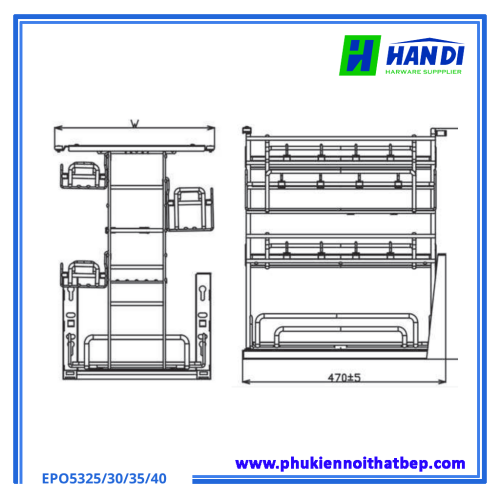 Chiều rộng tủ phù hợp: 250,300, 350, 400 mm