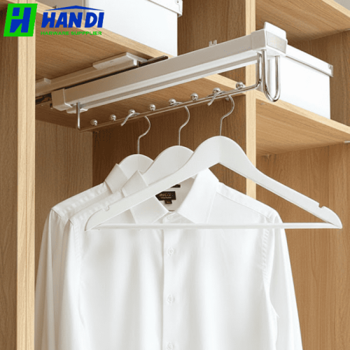 Giá treo mắc áo GARIS ược thiết kế đặc biệt để tích hợp gọn gàng vào tủ quần áo, tận dụng tối đa không gian chiều sâu mà các giá treo thông thường khó đạt được. Với kích thước lọt lòng tủ chỉ từ 420 LW/mm, sản phẩm giúp giải phóng diện tích quý giá, tạo ra một không gian lưu trữ rộng rãi và có tổ chức hơn. Màu trắng trang nhã cùng thiết kế hiện đại không chỉ mang lại sự tiện ích mà còn nâng cao tính thẩm mỹ tổng thể cho tủ quần áo và căn phòng.