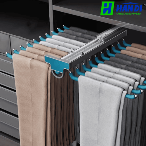 Với khả năng chịu tải trọng lên đến 15kg, Giá treo quần âu đôi GARIS GW35E cho phép bạn treo nhiều quần áo một cách tiện lợi và an toàn mà không cần lo lắng về sự cong gãy hay hỏng hóc. Điều này đặc biệt hữu ích cho những người sở hữu nhiều quần âu hoặc cần sắp xếp quần áo cho cả gia đình. Đi kèm với sản phẩm là ray âm giảm chấn mở toàn phần, cơ chế này không chỉ giúp giá treo hoạt động êm ái, trượt nhẹ nhàng mà còn tích hợp tính năng đóng chậm, chống kẹt tay, mang lại sự an toàn và tiện lợi tối đa trong quá trình sử dụng. Đây là một điểm cộng lớn, nâng cao trải nghiệm người dùng lên một tầm cao mới.
