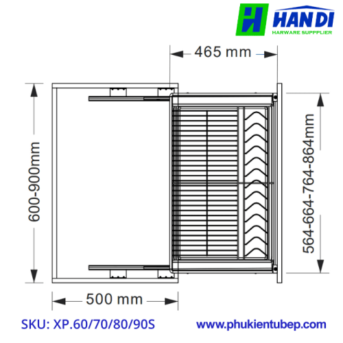 Để người dùng có thể lựa chọn sản phẩm phù hợp nhất với kích thước tủ bếp của mình, Giá xoong nồi GRANDX XP.60S, XP.70S, XP.80S, XP.90S đã cung cấp các thông số kỹ thuật chi tiết cho từng mã sản phẩm:
