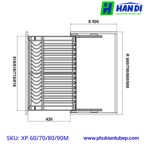 CÔNG TY TNHH CUNG ỨNG NỘI THẤT HÂN DI tự hào là đơn vị cung cấp uy tín các dòng phụ kiện tủ bếp cao cấp, trong đó có Giá xoong nồi nan Oval GRANDX XP.60M, XP.70M, XP.80M, XP.90M. Chúng tôi cam kết mang đến cho khách hàng những sản phẩm chính hãng, chất lượng vượt trội với mức giá cạnh tranh nhất trên thị trường. Đội ngũ nhân viên tư vấn chuyên nghiệp của Hân Di luôn sẵn sàng hỗ trợ quý khách 24/07, giúp bạn lựa chọn được sản phẩm phù hợp nhất với nhu cầu và không gian bếp của mình.