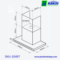 Phân loại: Hút mùi chữ T, điều khiển cảm ứng GARIS G3457