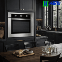 Lò nướng điện âm tủ, mặt kính đen phối Inox sang trọng.