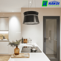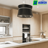 Máy hút mùi gắn trần đảo được chế tác từ sự kết hợp giữa chất liệu nhựa polyme cao cấp và lớp sơn đen tinh tế. Sự lựa chọn này không chỉ đảm bảo độ bền bỉ theo thời gian mà còn mang lại vẻ ngoài sang trọng, hiện đại, dễ dàng hòa hợp với nhiều phong cách thiết kế nội thất bếp khác nhau. Kích thước Ø500mm là một kích thước lý tưởng, phù hợp với nhiều không gian bếp đảo, tạo điểm nhấn ấn tượng mà không gây cảm giác cồng kềnh.