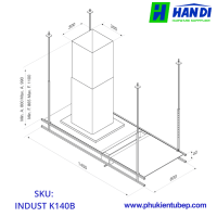 - Kích thước: Với kích thước W1400 x D600 x H(965-1200)mm, máy hút mùi gắn trần MALLOCA INDUST K140B có thể lắp đặt linh hoạt ở nhiều vị trí khác nhau, phù hợp với các không gian bếp từ vừa đến lớn, đặc biệt là các đảo bếp trung tâm. Khả năng điều chỉnh chiều cao (H(965-1200)mm) cho phép tùy biến theo chiều cao trần nhà và nhu cầu thẩm mỹ.