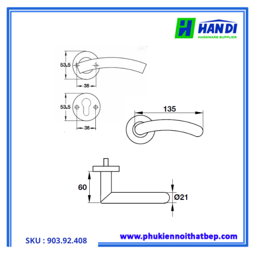 Để quý khách hàng có cái nhìn tổng quan nhất về sản phẩm, dưới đây là thông tin chi tiết về tay nắm gạt cho cửa phòng HAFELE 903.92.408:
