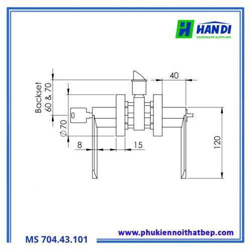 Tên sản phẩm: Tay nắm gạt 1 đầu chìa + vặn.
