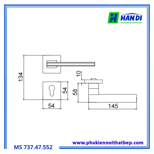 Kích thước: Chiều dài tay gạt: 133mm; Chiều cao tay gạt: 54mm; Kích thước ốp: 54×54mm