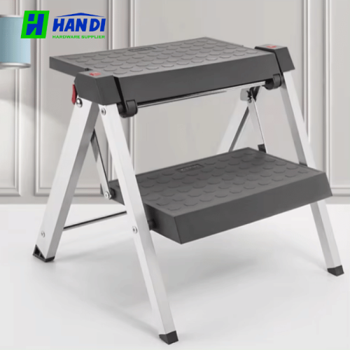 Thiết kế: 2 bậc (2 tầng) thông minh, có thể gấp gọn tuyệt đối sau khi sử dụng để cất vào các khe tủ hẹp.