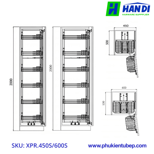 Tủ đồ khô cánh mở GRANDX XPR.450S, XPR.600S là một phụ kiện tủ bếp cao cấp, được thiết kế chuyên biệt để lưu trữ các loại thực phẩm khô, gia vị, chai lọ và các vật dụng nhỏ khác trong căn bếp. Sản phẩm thuộc dòng tủ đồ khô cánh mở, cho phép tiếp cận toàn bộ không gian lưu trữ một cách dễ dàng khi cánh tủ được mở ra. Với cấu trúc thông minh, tủ đồ khô này giúp tận dụng tối đa chiều cao của khoang tủ bếp, biến những góc khuất trở nên hữu dụng.