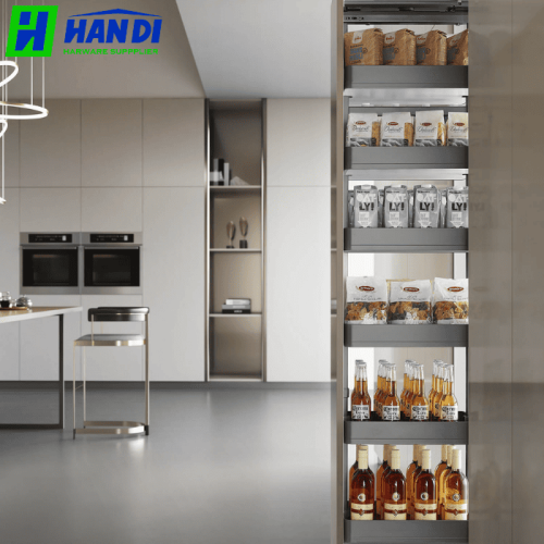 Đây là ứng dụng phổ biến và thiết thực nhất của Tủ đồ khô cánh xoay GRANDX XPR.400T. Sản phẩm được lắp đặt trong các khoang tủ bếp, giúp gia chủ lưu trữ thực phẩm khô, gia vị, chai lọ, đồ hộp, và các vật dụng nhà bếp khác một cách khoa học. Cơ chế cánh xoay giúp việc lấy và cất đồ trở nên dễ dàng, tiết kiệm thời gian và công sức, đặc biệt là với người lớn tuổi hoặc trẻ em.