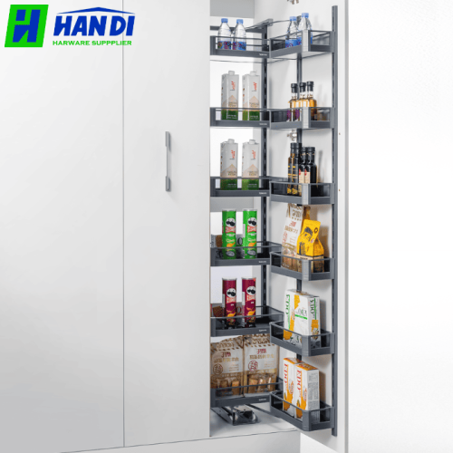 Trải nghiệm sử dụng tủ đồ khô GRANDX trở nên dễ dàng và an toàn hơn bao giờ hết. Hệ chuyển động sử dụng bộ ray âm cao cấp hoạt động cực kỳ ổn định, giúp bạn kéo ra/đẩy vào tủ một cách nhẹ nhàng, êm ái ngay cả khi tải trọng nặng. Đáy khay được phủ lớp chống trượt hiệu quả, ngăn chặn chai lọ hoặc thực phẩm bị đổ vỡ, đảm bảo an toàn cho mọi vật dụng bên trong.