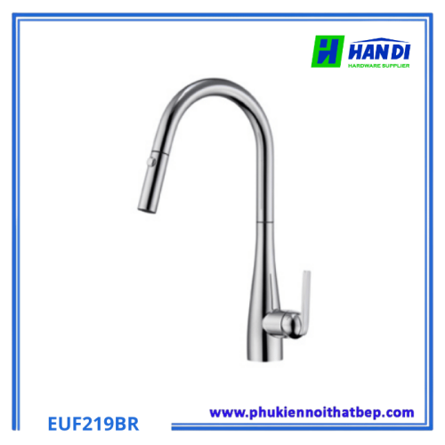 - Cơ cấu: Vòi dây rút tiện lợi, kéo dài đầu vòi ra khỏi vị trí cố định để vệ sinh các ngóc ngách của chậu rửa hoặc các vật dụng lớn một cách dễ dàng. Đây là một đặc điểm nổi bật của Vòi Rửa Bát Eurogold EUF219BR.