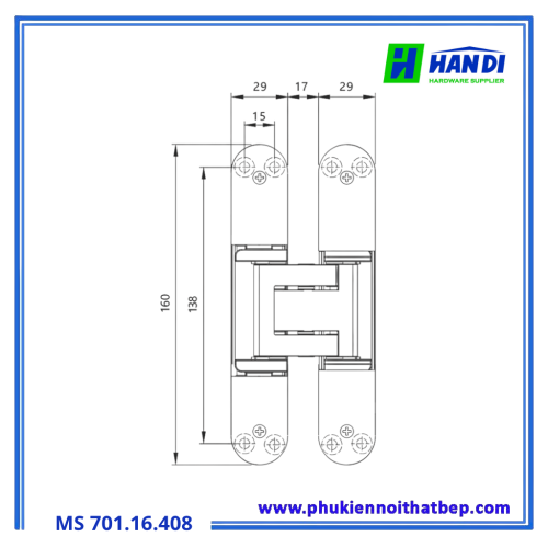 Thiết kế âm tủ giúp Bản lề âm IMUNDEX 701.16.408 có Kích thước tổng thể: 160 x 29 mm hoàn toàn ẩn mình vào bên trong cánh cửa, tạo nên vẻ đẹp liền mạch, sang trọng và hiện đại cho không gian nội thất. Điều này đặc biệt quan trọng trong các thiết kế tối giản, nơi mọi chi tiết đều được chú trọng để đạt được sự hoàn hảo.