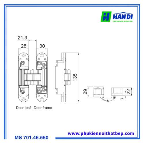 Để hiểu rõ hơn về sản phẩm, dưới đây là các thông số kỹ thuật chi tiết của bản lề âm IMUNDEX-701.46.550: