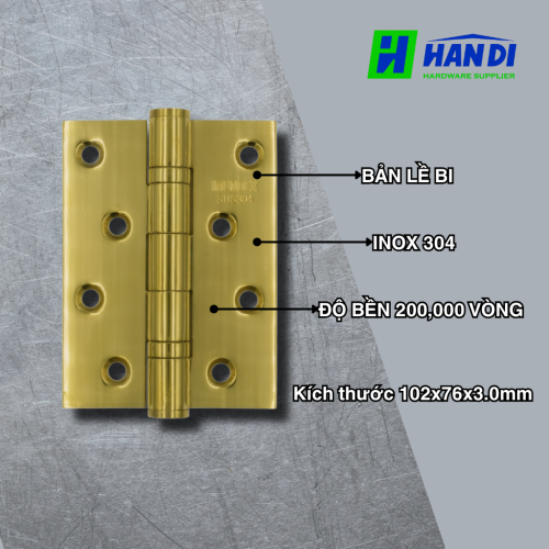 Bản lề bi được chế tạo từ Inox 304 – loại thép không gỉ hàng đầu với khả năng chống ăn mòn, chịu nhiệt và độ bền cơ học cao. Chất liệu này đảm bảo sản phẩm không bị gỉ sét, biến dạng trong quá trình sử dụng, đặc biệt là trong môi trường bếp ẩm ướt. Lớp mạ vàng PVD (Physical Vapor Deposition) không chỉ mang đến vẻ đẹp sang trọng, quý phái mà còn tăng cường khả năng chống trầy xước, bảo vệ bề mặt sản phẩm khỏi các tác động từ bên ngoài.