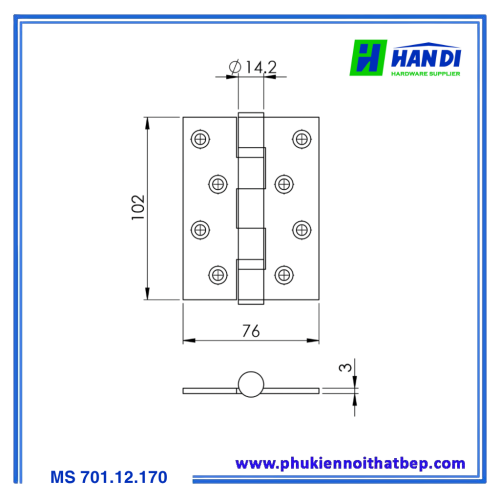 Tên hàng: Bản lề bi MS-701.12.170