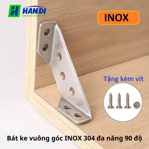 Sản phẩm Bát ke vuông góc INOX 304 đa năng 90 độ là một phụ kiện liên kết không thể thiếu, chuyên dùng để cố định và gia cố các góc vuông trong nhiều loại vật liệu khác nhau. Được chế tạo từ Inox 304, một loại thép không gỉ cao cấp, sản phẩm này vượt trội hơn hẳn so với các loại ke góc thông thường về độ bền và khả năng chống chịu môi trường.