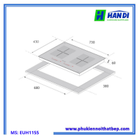 Với kích thước sản phẩm 730W x 430D x 60H (mm) và kích thước khoét đá 680W x 380D (mm), Bếp từ 2 vùng nấu EUH1155 dễ dàng lắp đặt âm tủ, tạo nên một mặt bếp phẳng liền mạch, tối ưu hóa không gian và mang lại vẻ đẹp hiện đại cho căn bếp. Mặt kính Euro Sapphire được bo viền nhôm cao cấp không chỉ tăng thêm tính thẩm mỹ mà còn đảm bảo độ bền, khả năng chịu lực, chịu nhiệt và dễ dàng vệ sinh.