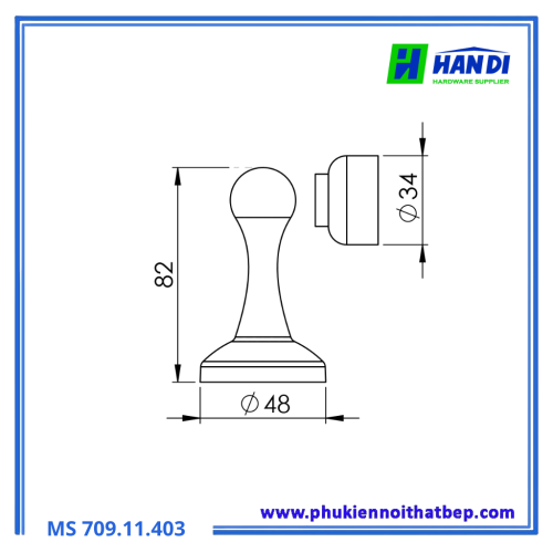 Với kích thước ấn tượng 48 * 82mm (Rộng,Sâu,Cao), chặn cửa nam châm IMUNDEX 709.11.403 có thiết kế tinh gọn. Cấu tạo bao gồm hai phần chính: thân trụ hít lắp sàn hoặc tường, và đầu giữ nam châm gắn vào cánh cửa. Sự kết hợp này tạo ra lực hút nam châm mạnh mẽ, giúp cố định vị trí cửa một cách chắc chắn.