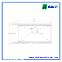 Kích thước khoét đá: 770*420 (mm) cho cả hai mã EUS18045GB và EUC18045LB.