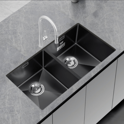 - Đặc tính nổi bật: Ngoài thiết kế 2 hố cân đối và màu đen sang trọng, sản phẩm còn nổi bật với khả năng chống xước và chống gỉ sét tuyệt đối, đảm bảo chậu luôn giữ được vẻ đẹp và độ bền bỉ qua năm tháng.