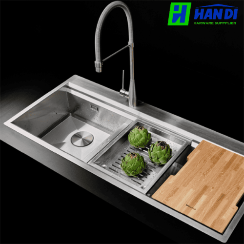 Trang bị sẵn rổ Inox và thớt gỗ cao cấp đi kèm chậu.