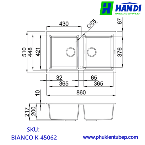 Chậu rửa chén đá MALLOCA BIANCO K-45062, mã sản phẩm BIANCO K-45062, là một trong những sản phẩm nổi bật thuộc dòng chậu rửa chén đá cao cấp của thương hiệu MALLOCA. Với kích thước tổng thể là W860 x D510 x H217mm và kích thước khoét đá W840 x D480mm, sản phẩm này phù hợp với đa số không gian bếp, từ căn hộ chung cư đến nhà phố, biệt thự.