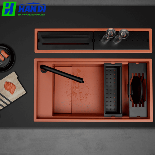 Chậu rửa đá Granite Nano màu cá hồi.