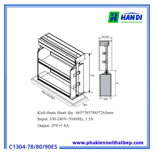 Kiểu lắp: lắp trực tiếp vào khoang tủ
