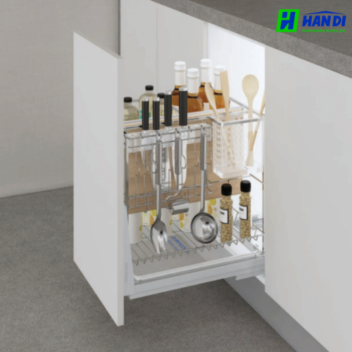 Tính năng nổi bật: Tích hợp nhiều ngăn đựng (dao, thớt, đũa, gia vị), có khay hứng nước.
