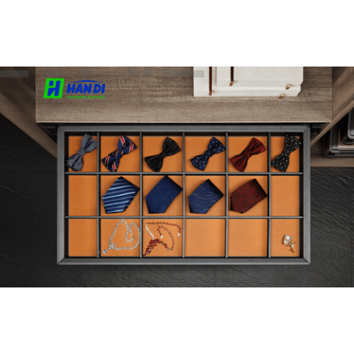 Với tông màu đen chủ đạo kết hợp cùng điểm nhấn là lớp da màu cam tinh tế, Giá để đồ trang sức âm tủ Eurogold EAB6160 mang đến vẻ ngoài sang trọng, hiện đại và đầy cuốn hút. Màu sắc này không chỉ dễ dàng hòa hợp với nhiều phong cách nội thất khác nhau mà còn tạo nên điểm nhấn độc đáo, thể hiện gu thẩm mỹ tinh tế của gia chủ. Dù tủ quần áo của bạn mang phong cách cổ điển hay hiện đại, phụ kiện tủ quần áo này vẫn luôn là một lựa chọn hoàn hảo.
