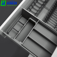 Giá bát đĩa GrandX sử dụng thiết kế hộc kéo con bên trong ngăn kéo để phù hợp công năng, linh hoạt về lưu trữ tối ưu hóa về không gian, bố cục lưu trữ đồ dùng.