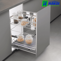 Với nhiều kích thước chiều rộng tủ khác nhau (250mm, 300mm, 350mm, 400mm), sản phẩm cho phép người dùng lựa chọn loại phù hợp nhất với không gian tủ bếp của mình, tránh lãng phí diện tích. Khả năng kéo mở toàn phần của ray âm giúp tiếp cận mọi chai lọ gia vị một cách dễ dàng, nhanh chóng, tiết kiệm thời gian tìm kiếm và mang lại sự thoải mái khi nấu nướng.
