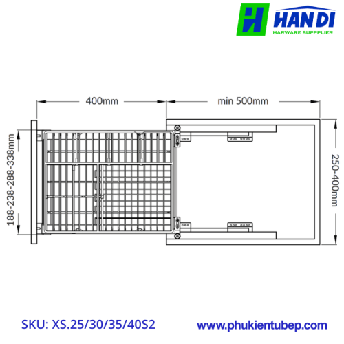 Sản phẩm phụ kiện tủ bếp Giá đựng chai lọ gia vị GRANDX XS.25/ 30/ 35/ 40S2 được thiết kế đặc biệt để giải quyết bài toán lưu trữ các loại chai lọ gia vị một cách khoa học. Với nhiều kích thước khác nhau, người dùng có thể dễ dàng lựa chọn sản phẩm phù hợp với chiều rộng tủ bếp của mình, từ đó tận dụng tối đa diện tích, tránh lãng phí không gian quý báu.