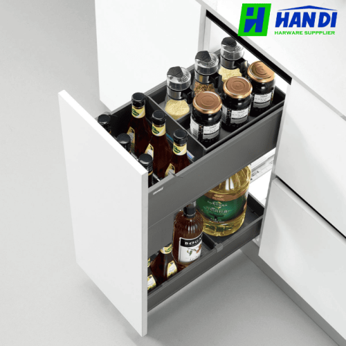 Giá đựng gia vị Grand X với ngăn kéo thu gọn trong hộc tủ, tạo 1 không gian hoàn hảo, đáp ứng nhu cầu lưu trữ các lọ gia vị, chai dầu và các vật dụng nhà bếp có kích thước khác nhau, giúp cho việc lưu trữ gọn gàng, ngăn nắp.