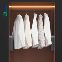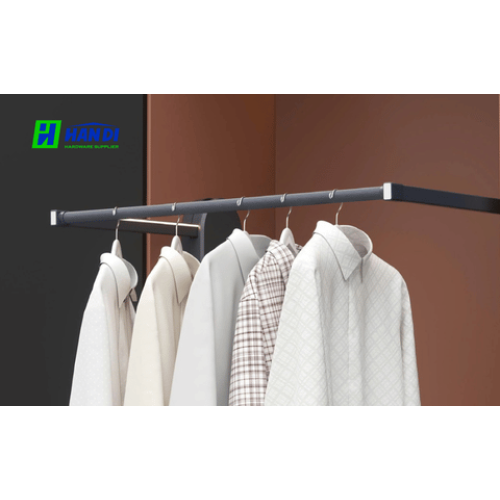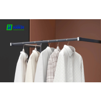 Cấu tạo thiết kế: Tích hợp cảm biến chạm hoặc điều khiển thông minh, giúp thanh treo di chuyển lên xuống dễ dàng, phù hợp với các khoang tủ cao.