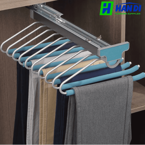 - Dễ dàng lấy và cất giữ: Hệ thống ray âm giảm chấn mở toàn phần cho phép kéo giá treo ra ngoài một cách nhẹ nhàng, giúp việc lựa chọn và cất giữ quần áo trở nên vô cùng thuận tiện.