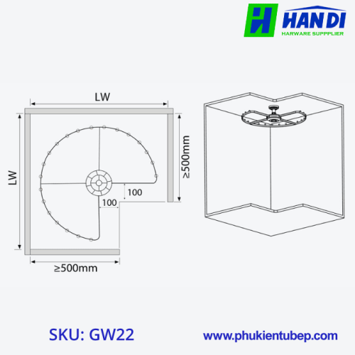 Để hiểu rõ hơn về khả năng và độ phù hợp của sản phẩm, quý khách hàng có thể tham khảo bảng thông số kỹ thuật chi tiết của giá xoay, treo trần góc tủ quần áo GARIS GW22 dưới đây. Những thông tin này sẽ giúp bạn dễ dàng hình dung và lựa chọn sản phẩm phù hợp nhất với thiết kế tủ quần áo của mình.