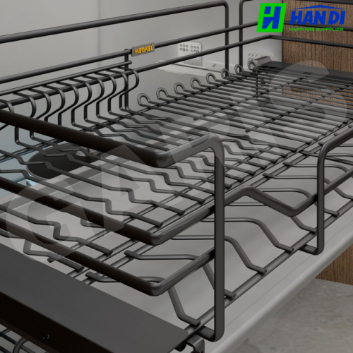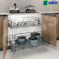 Giá xoong nồi bát đĩa được trang bị ray âm giảm chấn (bắt vách tủ), giúp bạn đóng mở tủ một cách nhẹ nhàng, êm ái, không gây tiếng ồn. Bộ bắt mặt (tùy chọn dùng cho cánh kéo) giúp bạn dễ dàng lắp đặt sản phẩm vào tủ bếp. Khay đựng nước tiện lợi giúp giữ vệ sinh cho tủ bếp, tránh tình trạng nước nhỏ giọt làm ẩm mốc.