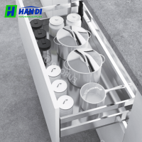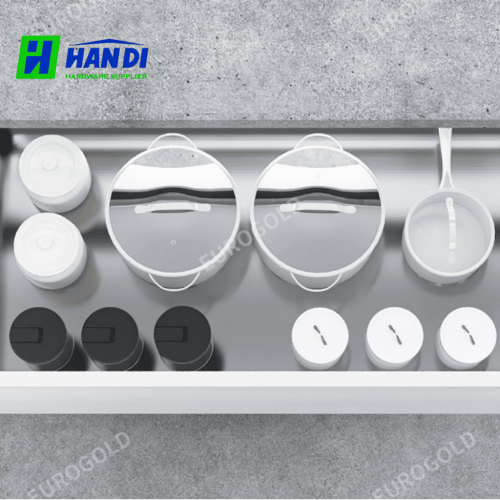 Thiết kế dạng hộp giúp bạn dễ dàng sắp xếp xoong nồi, chảo một cách gọn gàng và ngăn nắp. Với các kích thước khác nhau, bạn có thể lựa chọn sản phẩm phù hợp với kích thước tủ bếp của mình. Ray trượt âm 3 tầng giảm chấn giúp bạn đóng mở tủ một cách nhẹ nhàng và êm ái, không gây tiếng ồn.