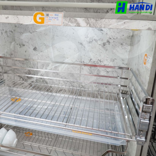 Kèm theo: Ray âm giảm chấn GARIS (bắt vách tủ), 1 bộ bắt mặt cánh tủ, 1 khay đựng nước, giấy chứng nhận inox 304