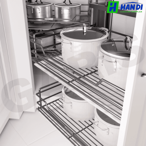 Hệ góc liên hoàn thông minh GARIS MC02N.45 phù hợp với nhiều không gian bếp khác nhau, đặc biệt là những căn bếp có diện tích nhỏ hoặc thiết kế góc cạnh. Sản phẩm có thể được sử dụng để lưu trữ: