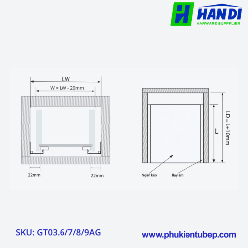 Kích thước ngăn kéo tiêu chuẩn: